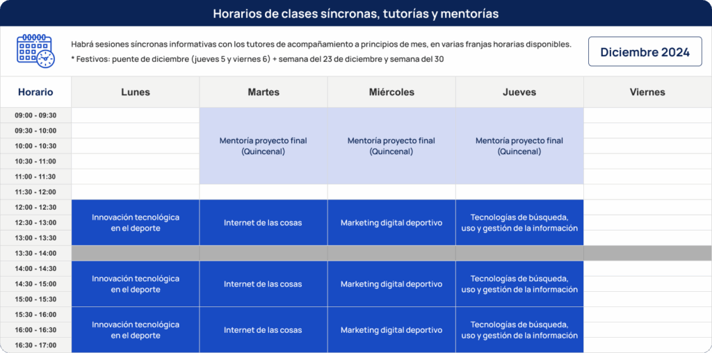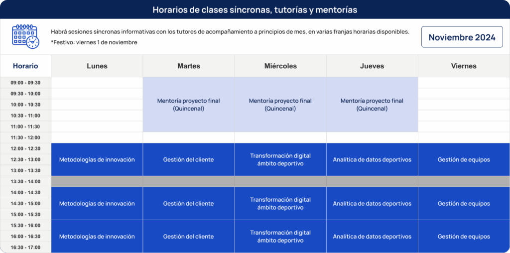 La segunda edición del programa en Competencias de digitalización, innovación y tecnología en el ecosistema del Deporte se desarrollará entre el  30 de septiembre de 2024 y el 31 de enero de 2025.